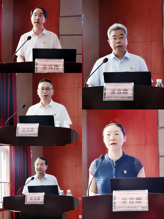 会上,五个单位代表分别结合实际工作就学习习近平总书记“七一”讲话精神作交流发言。数学与计算机学院党委书记张清学围绕“突出一个主题、宣告两个目标、总结三大飞跃、强调四大成绩”以及“亮点、金句”解读了总书记“七一”讲话主要内容,并结合攀枝花学院“自律自强”的发展历史,交流个人对学校未来发展的认识。附属医院副院长包家新以“悠悠民生 健康最大”为题,结合附属医院50年与祖国卫生事业共成长的发展历程和“十四五”发展规划,深切表达了中国共产党“只有人民利益”的人民情怀。资产管理处处长张敬东以“贯彻‘七一’讲话精神、开创资产管理新局面”为题,分别就弘扬建党精神、聚焦主体责任、抓好工作落实做交流发言。校巡察督查办公室主任许开华表示,要贯彻落实总书记“七一”讲话精神,切实履职尽责、奋发进取,讲党性、重品行,严格自律,敢于担当、踏实奉献。党委教工部部长张勤围绕建党精神,表示将以自律的品牌引领师德师风建设,以务实有效的举措做好人才工作,围绕重点中心工作做好第三轮岗位聘任工作,以补齐短板深化教师职称评审,以改革创新精神推进学校人事工作。