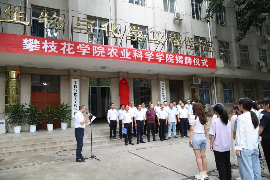 9月10日下午,攀枝花学院农业科学学院揭牌仪式在博学楼前举行。校党委副书记、校长王曙光,省纪委监委驻攀枝花学院纪检监察组组长、校党委副书记、纪委书记彭徐,校党委副书记胥刚,攀枝花市科技局副局长池勇,攀枝花市农业农村局副局长洪志刚,攀枝花市农林科学研究院副院长唐平出席仪式,农学院院领导班子成员、农业科学课题组专家以及农学院园艺专业学生代表参加活动。仪式由农学院党委负责人主持。