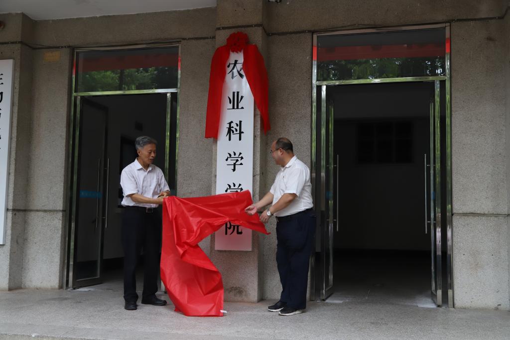 王曙光和彭徐共同为农学院揭牌。