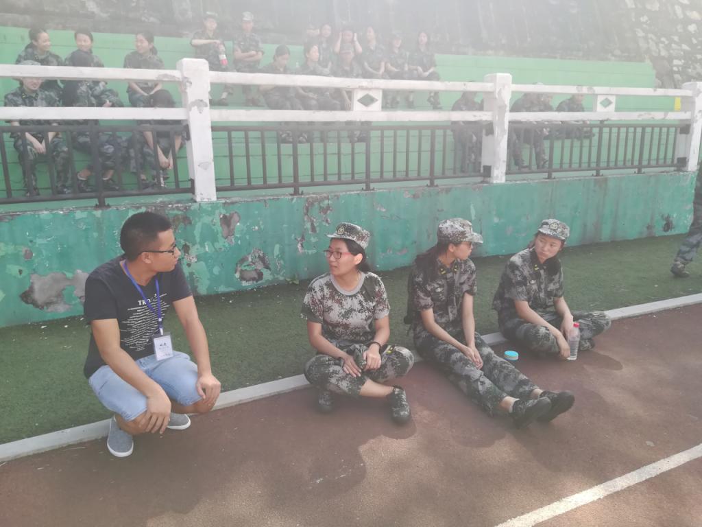 面对军训时多变的天气状况,为了及时有效地应对突发状况,学校二级学院分管学生工作的领导,2017级新生辅导员,医生,以及在场学生志愿者,为军训教官和学生提供了强有力的后勤保障。