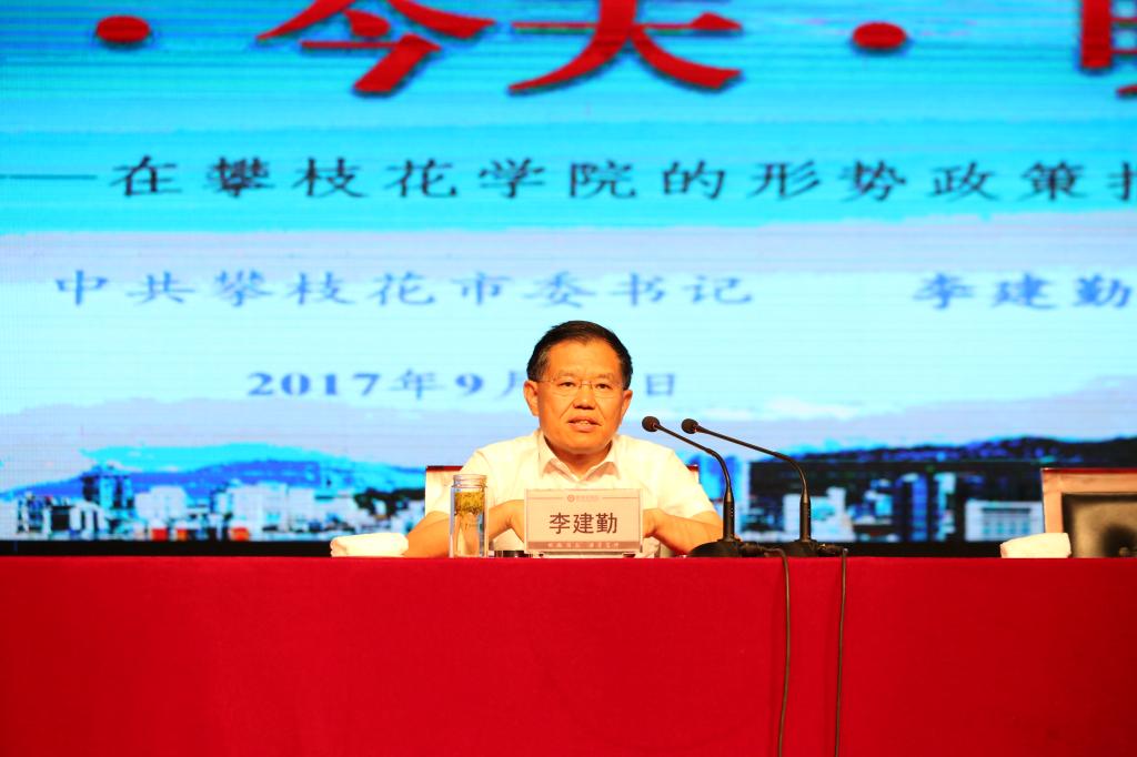 在谈到攀枝花学院如何做好“钒钛”、“阳光”两篇文章时,李建勤提出了三点希望。一是要办好攀枝花学院,办好康养学院,办出特色,着力培养好“钒钛”、“阳光”两方面人才;二是加大科技创新,实现产学研一体化。依托学校的国家钒钛检测重点实验室等平台,开展钒钛资源开发及综合利用产业化研究,加快成果转化,推动地方经济建设和发展;三是攀枝花学院要成为这座城市的文化高地和品牌,攀大师生要成为这座城市的城市文明传播者,城市文化的建设者。
