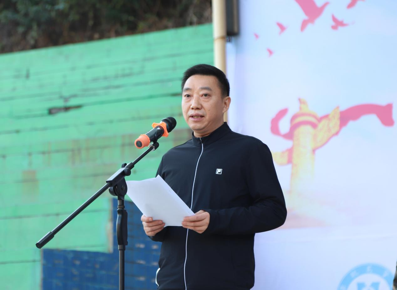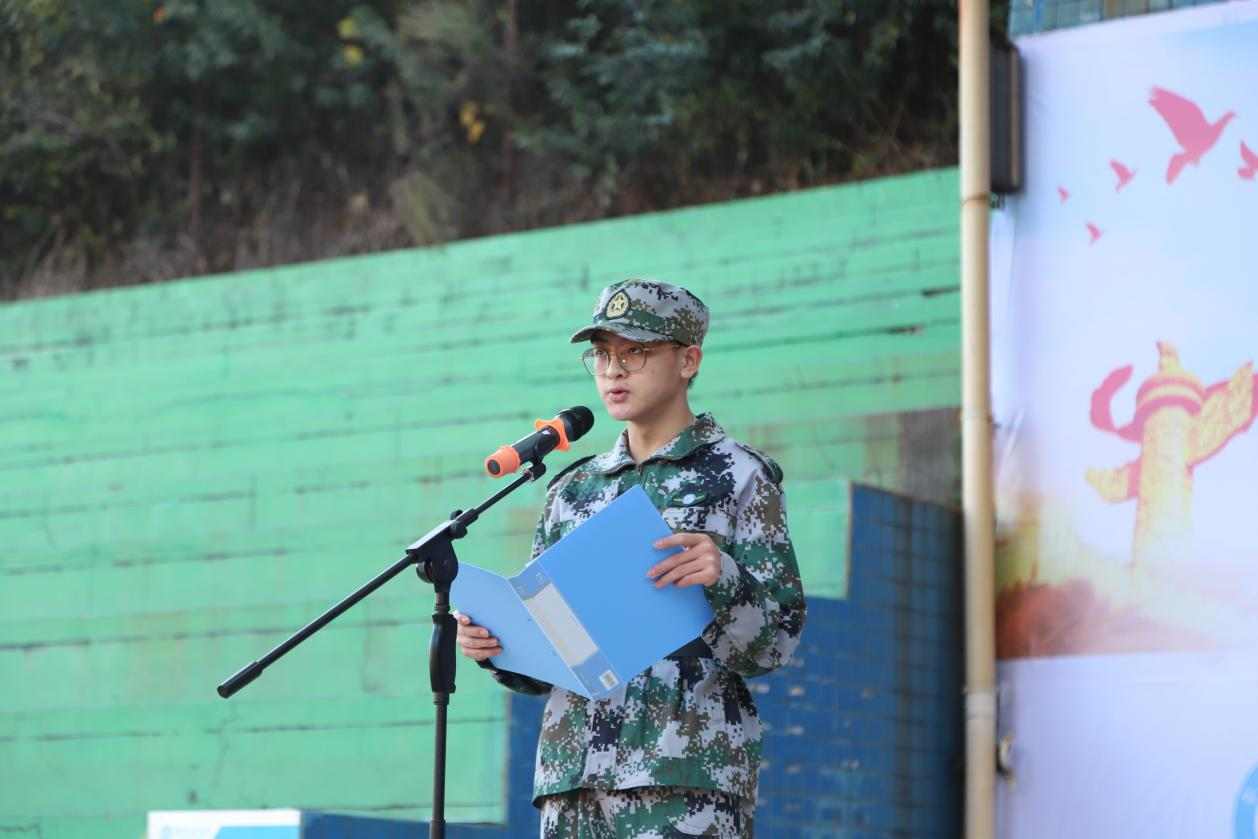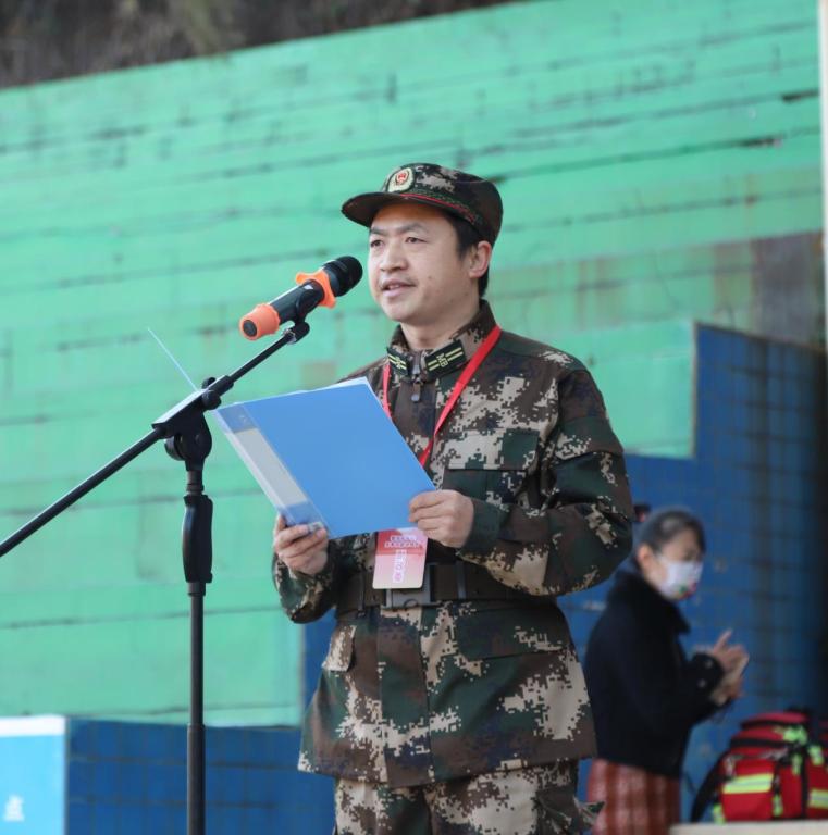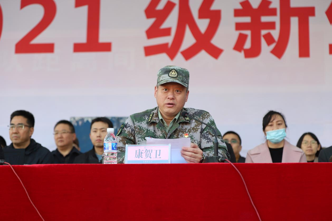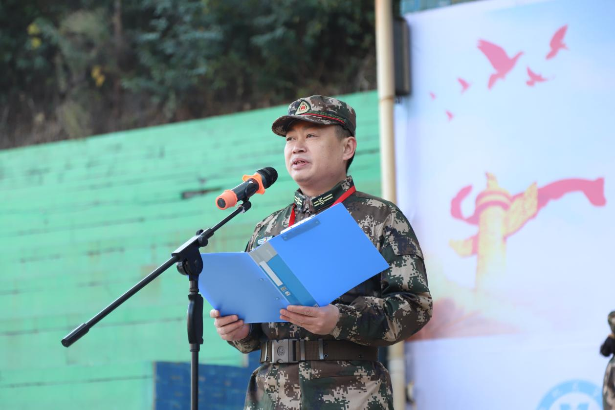 康贺卫代表攀枝花市东区武装部向我校全体教职工致以节日的问候。他表示面对复杂国际形势,广大青年学子要培养意志品质、充实国防知识,加强国防教育刻不容缓,要珍惜国防教育机会,在服从命令中明白组织纪律,在刻苦训练中磨砺意志品质,在关心互助中感受团结齐心,在军训中学有所成、学有所获,争做新时代“四有”青年。