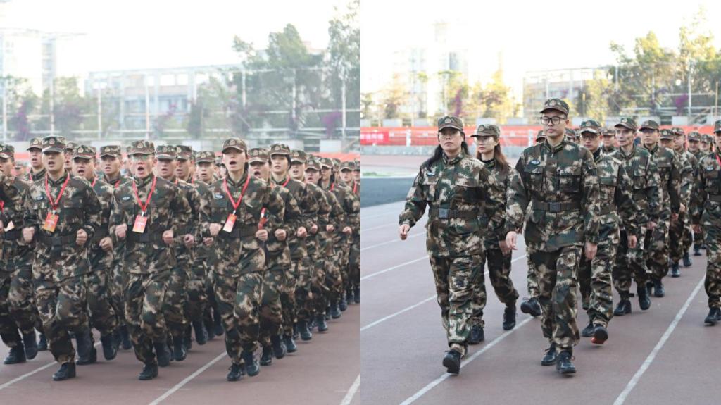2021级军训60名教官均从学校退伍大学生中选拔产生,并进行了严格的培训,全校共4177名参训学员,组成6个营、13个连、52个排分别在本部足球场、西苑足球场进行。期间,参训人员将进行齐步、正步、擒敌术、匕首操等军事技能训练和丰富的军事理论学习。