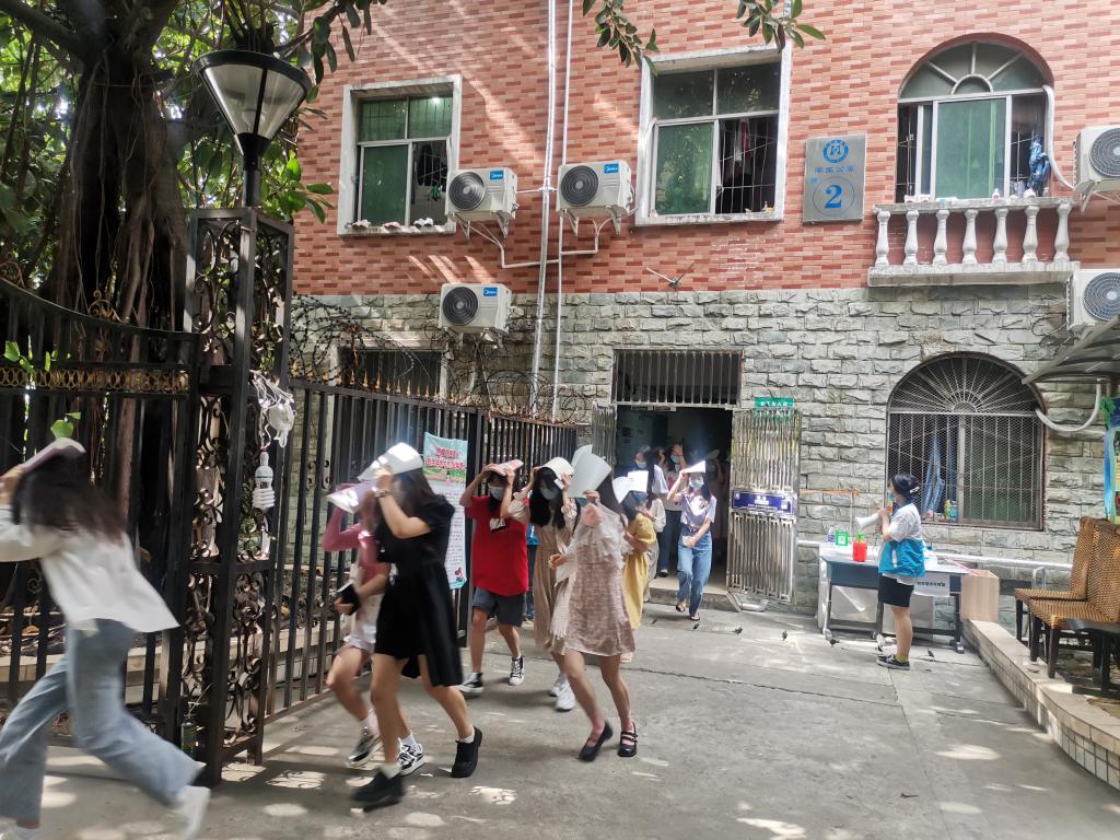 30秒后,第一次地震波结束,在授课教师、志愿者和公寓管理员等指引下,学生们迅速从教室、寝室、图书馆等地有序疏散,安全迅速到达各集结点并清点人数。
