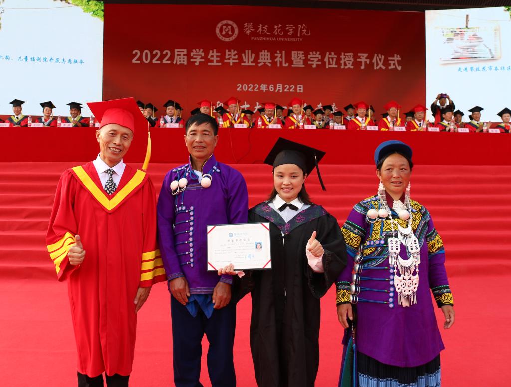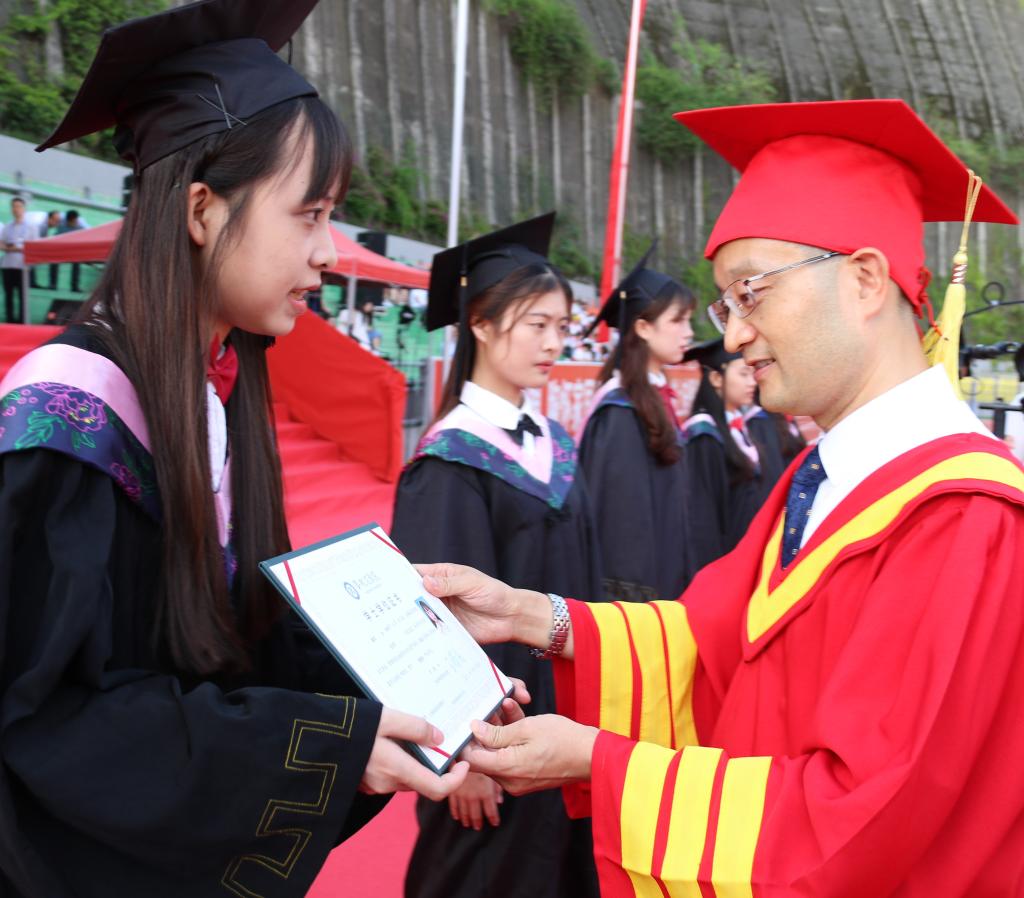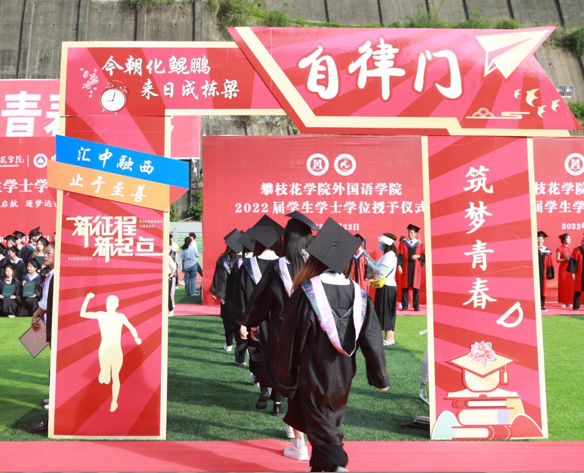 本次毕业典礼暨授位仪式采用“线下授位+全网直播“的方式,首次采用“集中授位+学院授位”的方式。并在大屏幕上为每一位毕业生播放大学成长PPT,展示他们的青春印迹以及一起走过的攀大足迹。