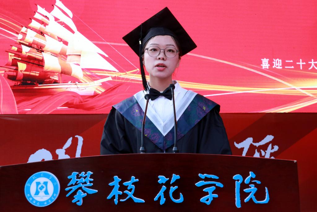 医学院2017级临床医学本科4班王菲作为毕业生代表传达出聚首攀大时的满怀梦想与相识相知、相守于攀大的满怀激情和自律自信、临近告别攀大的满怀感激以及凌云壮志。