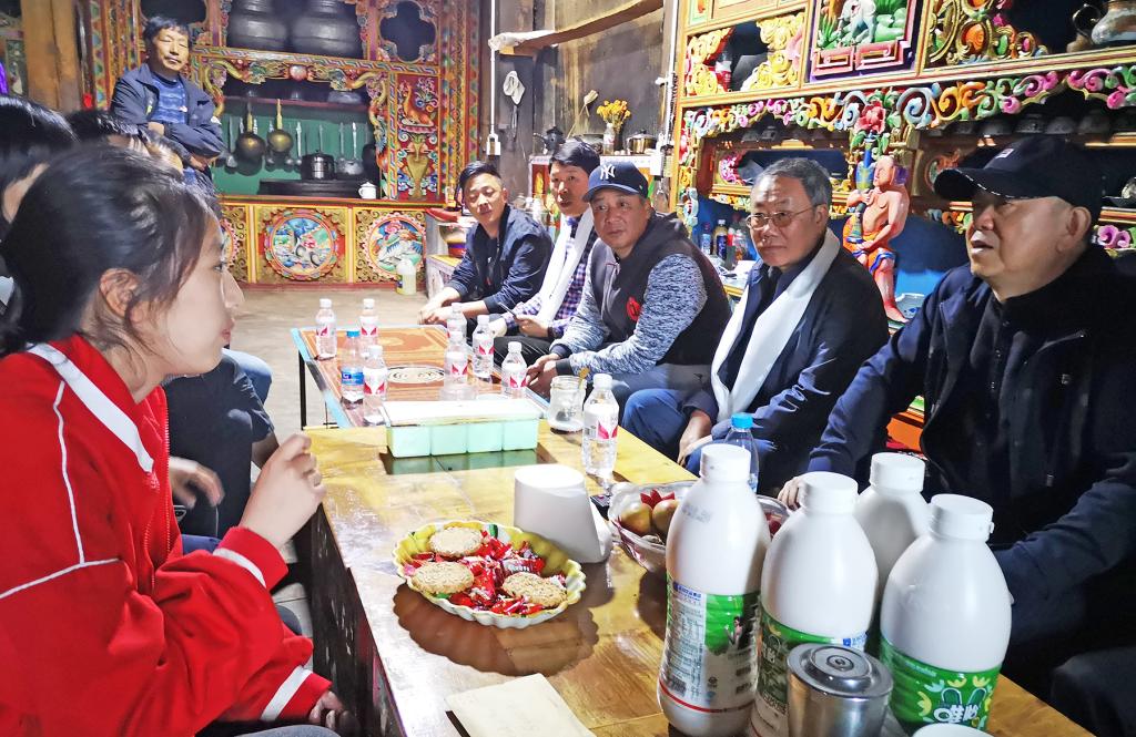 肖立军一行还深入学校帮扶的热郞宫村,看望驻村干部,慰问帮扶群众和困难学生。在热郞宫村活动室,村干部及群众为肖立军一行献上热情的哈达。驻村干部索绪洲介绍了村里贫困人口及脱贫工作情况。肖立军表示,很高兴看到热朗宫村持续不断的发展变化,攀枝花学院将一如既往地帮扶热郞宫村贫困群众脱贫致富。座谈会后,肖立军一行为贫困户和受资助学生发放了大米、食用油等慰问品。智能制造学院负责人为结对帮扶户贫困学生捐助了5000元学费。在贫困户家中,肖立军认真了解了贫困户家中的生产生活及受资助学生的学习生活情况,鼓励受资助学生好好学习,学业有成,争取早日为家分忧。