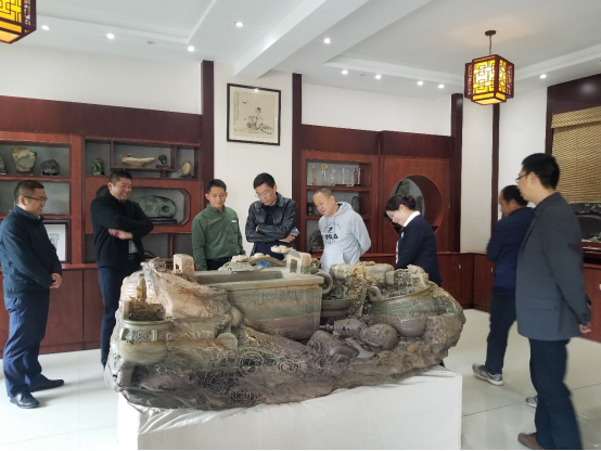 曹加勇详细介绍了工作室情况、砚雕行业发展现状和校企合作构想,提出了开展校企合作、文化传承与创新等方面建议。我校艺术学院负责人就人才培养、智力优势、产教创新、资源整合等与参会人员进行深入交流。