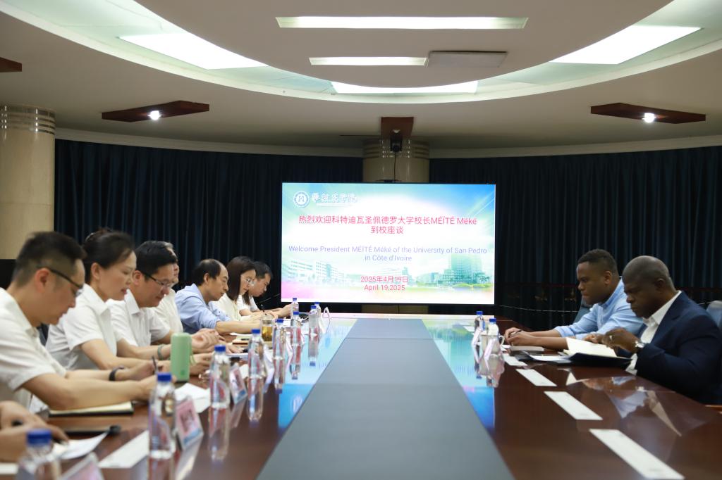 4月19日,科特迪瓦圣佩德罗大学校长梅泰·梅凯来我校访问交流,党委副书记、校长李兴贵,副校长王兵在弘毅楼300会议室举行了会见座谈,双方就学生交换、联合科研、国际汉语教学等内容进行了会谈。