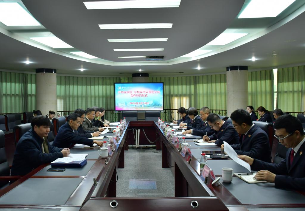 116日,为深化检校合作,推动法学教育与司法实践深度融合,我校与攀枝花市人民检察院在弘毅楼400室签订战略合作协议。校党委副书记、校长李兴贵,市检察院党组书记、检察长罗航出席会议。检校双方有关负责人、特约检察理论研究员、授课检察官等受邀参加会议。省纪委监委驻校纪检监察组组长、党委副书记、纪委书记李林襁主持会议。