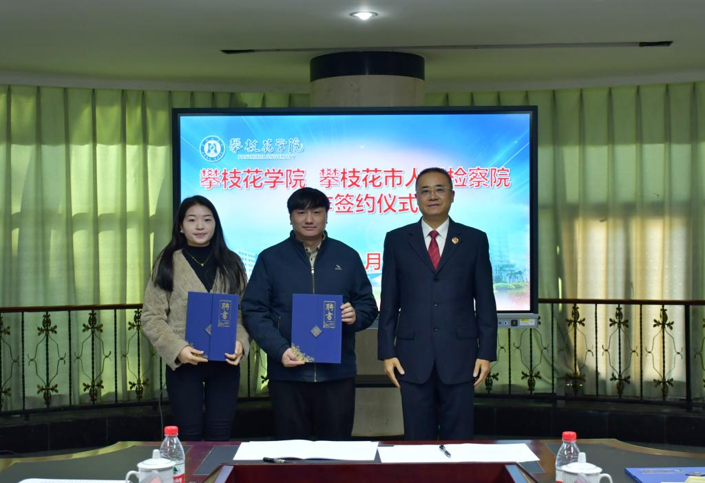 会上,法学院相关负责人介绍了法学专业的发展情况。李兴贵与罗航代表双方正式签署《攀枝花学院与攀枝花市人民检察院战略合作协议书》及《攀枝花市人民检察院攀枝花学院共建轻微犯罪研究中心实施方案协议》,标志着双方合作迈入制度化、常态化、深度化的新阶段。李兴贵、罗航分别为受聘授课检察官、受聘特约检察理论研究员颁发聘书。受聘代表郭文梅、段天男分别结合自身工作实际发言。