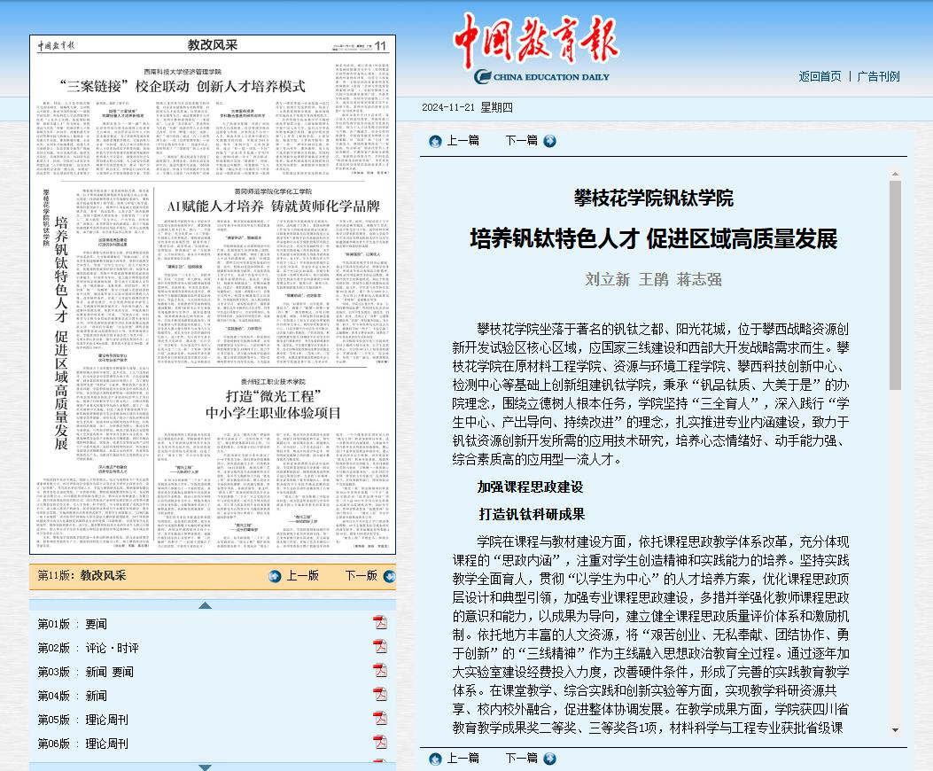 6  中国教育报报道我校钒钛特色人才培养经验做法