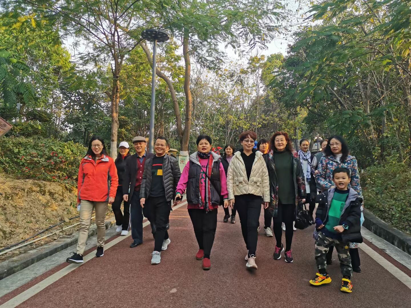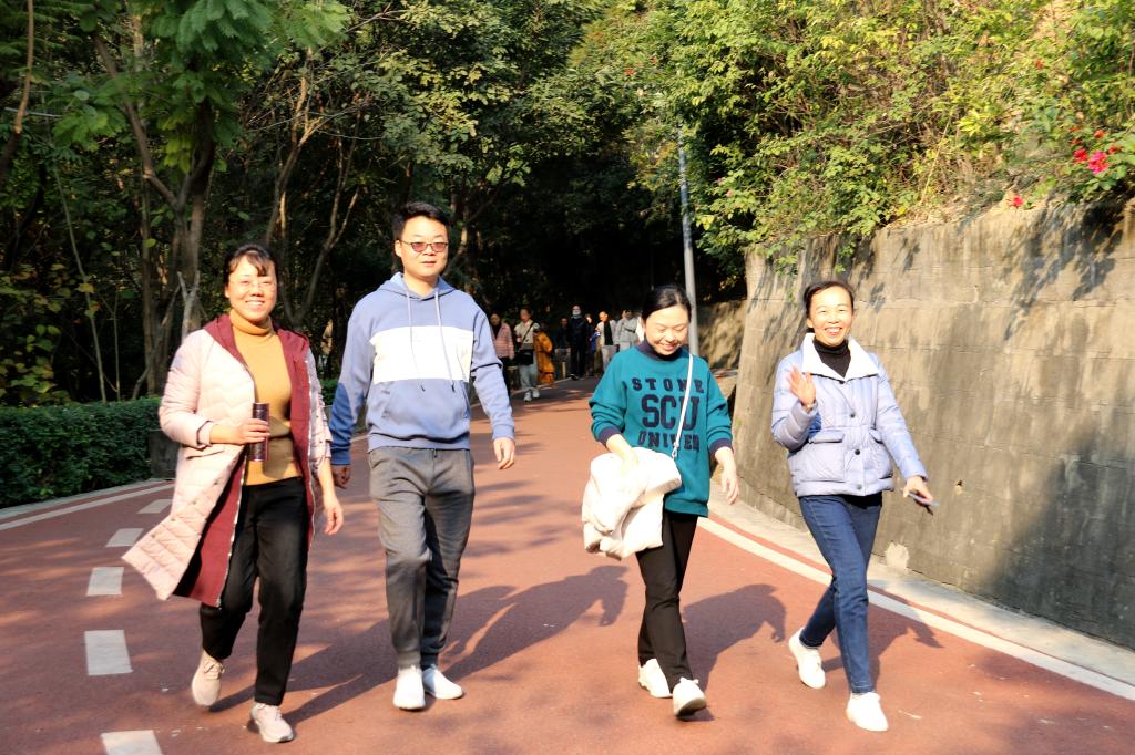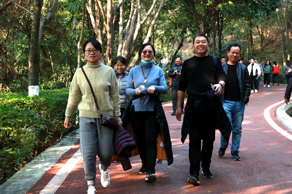大家呼吸着清新的空气,面不喘,气不虚,迈着矫健的步伐,交流着各自工作、生活情况,一路上欢声笑语不断。