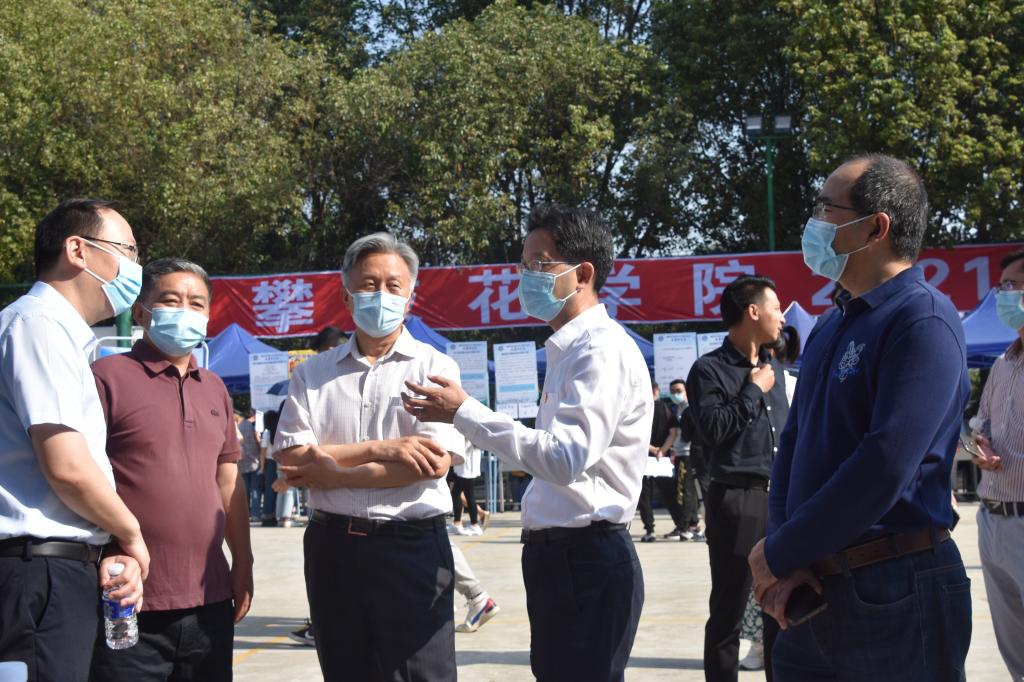 党委书记王斌,党委副书记、校长王曙光,副校长王兵走访双选会现场,与前来参会的企业就学生薪资、职业发展、企业需求等方面进行了深入交流。