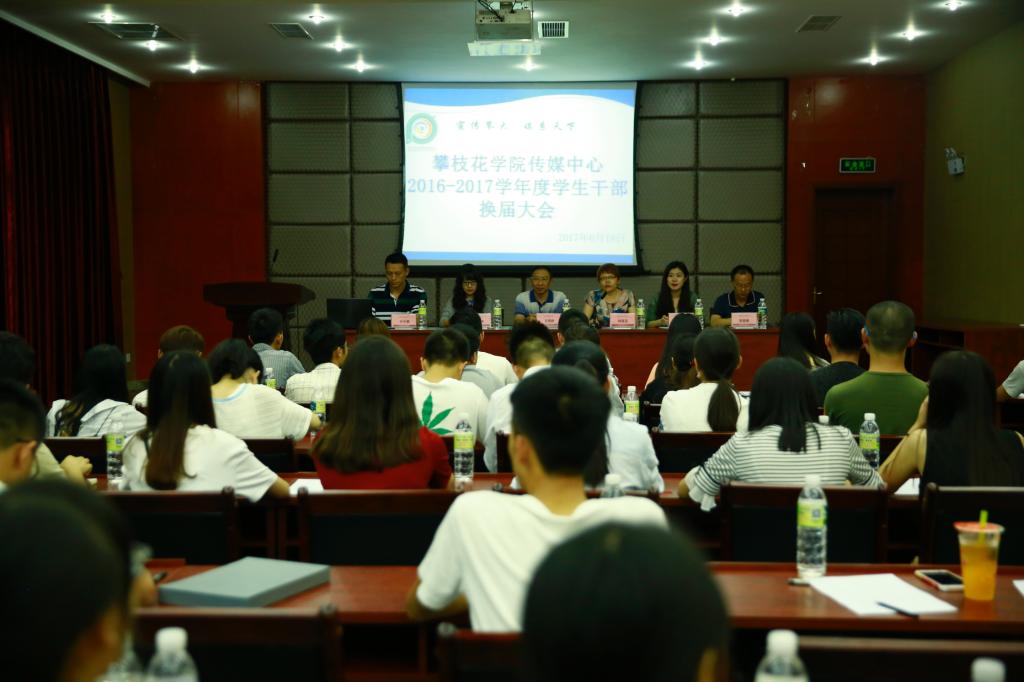 6月18日晚,我校传媒中心2016-2017年度干部换届大会在办公楼四楼附楼会议室召开。 传媒中心新老学生主任分别发言。发言肯定了过去一年传媒中心学生工作开展得有条不紊,工作成效明显,为学校各项事业发展提供了有力的舆论支持。新任学生主任向指导老师及老干部致谢,表示新一届的传媒中心干部将会继承发扬传媒中心老干部的优良作风,并在此基础上搭建新舞台,开创新局面,努力提升学校宣传工作水平。 会议宣读了关于表彰2016-2017年度“优秀传媒组织”“传媒之星”和关于任命传媒中心学生干部的相关文件。 宣传部负责人作重要讲话。他希望同学们提高认识,勇于担当,提高对传媒中心工作性质的认识,将党的声音传播到广大师生的心坎上去;坚持原则,严守纪律,坚守党性原则,维护组织形象;努力学习,提高能力,在工作中逐渐成熟,卓越成长。 参加会议的还有传媒中心指导老师,传媒中心新老干部及骨干成员。  大会现场 (摄影 张媛媛 谢恒) |