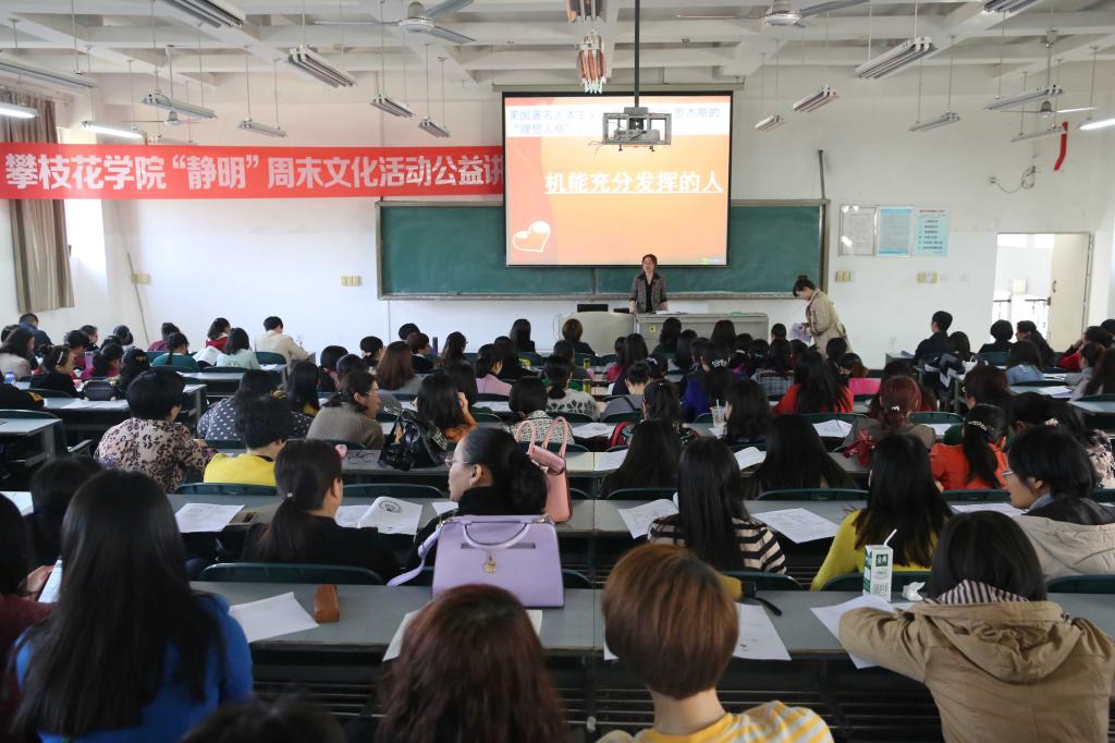 3月4日上午,“美丽女人三月天,优良家风有我传”——“静明”周末文化活动公益讲座于我校第二教学楼2-4教室举行,讲座由学校工会常务副主席、攀枝花市文化研究会副理事长邬明辉主讲,我校部分女教师、校友和市民聆听了本次讲座。